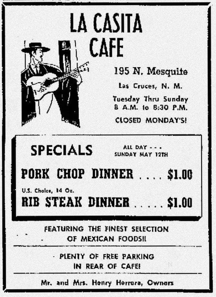 La Nueva Casita Cafe is the oldest restaurant in Las Cruces, starting out in 1957 as La Casita Cafe by the Herrera’s and being rebranded in the 90’s by the Salazar family as La Nueva Casita Cafe. Today, La Nueva Casita is a leader in southern New Mexico cuisine, employing a blend of old world recipes, local know-how, and cultural influences that go back centuries. Proudly located in the oldest neighborhood in Las Cruces, along what used to be the Camino Real de Tierra Adentro. Our business honors our roots and heritage by serving high quality Southern New Mexico Cuisine. We serve famous Hatch chile, regional dishes such as tostadas compuestas, & our signature red chile